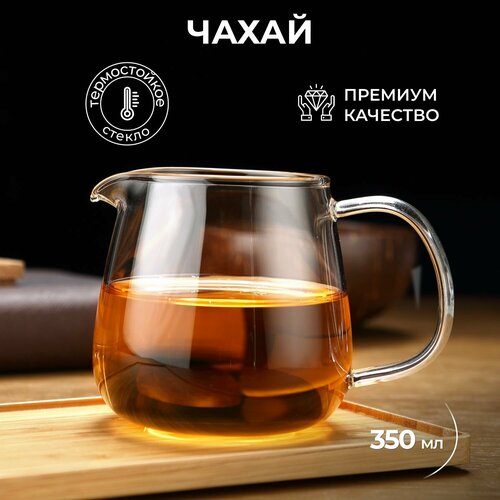 Прозрачный стеклянный чайный сливник с ручкой 350 мл SAMADOYO, Сливник для чая (чахай), Стеклянная посуда для чайной церемонии