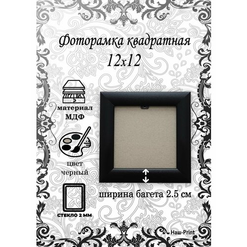 Квадратная фоторамка "Наш-принт" черная со стеклом, 12x12 см