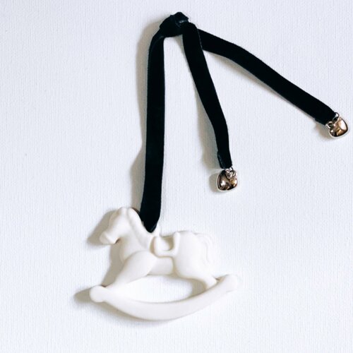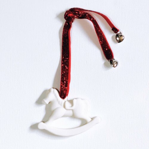 Подвес/игрушка из фарфора - лошадка с красной лентой, серебро