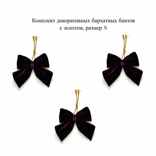 Комплект фиолетовых декоративных бархатных бантов с золотом, размер S