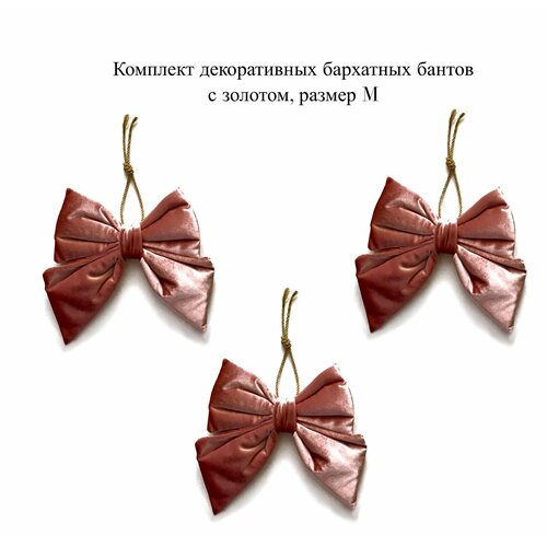 Комплект розовых декоративных бархатных бантов с золотом, размер M
