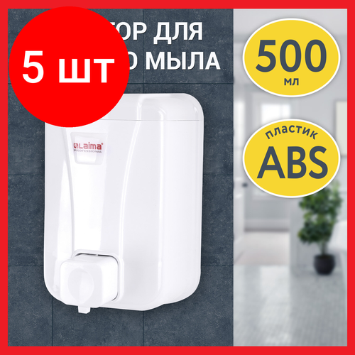 Комплект 5 шт, Диспенсер для жидкого мыла LAIMA PROFESSIONAL LSA, наливной, 0.5 л, белый, ABS-пластик, 607994, 3420-0