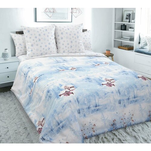 Постельное белье 1.5 спальное "Лидер Дом", поплин, 70х70, хлопок 100%, синее