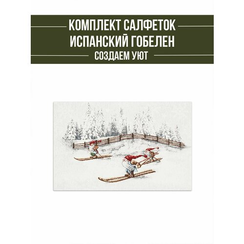 Комплект салфеток из гобелена Le Gobelin Гномы лыжники 2шт 35х50 см шенил