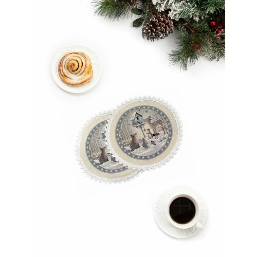 Комплект салфеток Le Gobelin Лесные друзья у кормушки 2шт диаметр 27 см