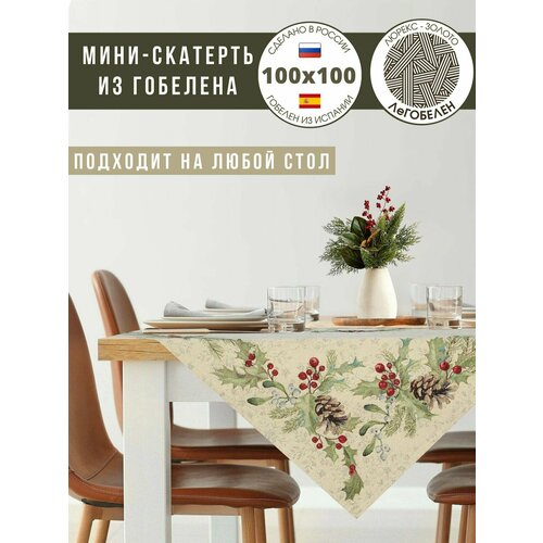 Скатерть Le Gobelin Еловый венок Снежинки 100х100 см