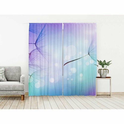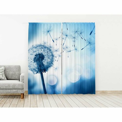 Комплект штор из блэкаута, Голубой одуванчик, 150/260 - 2 полотна