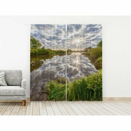 Комплект штор из блэкаута, Отражение в реке, 150/300 - 2 полотна