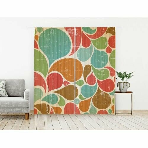 Комплект штор из блэкаута, Капли ретро, 150/300 - 2 полотна