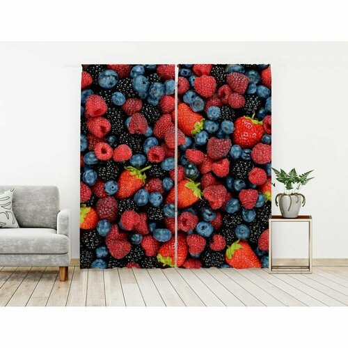 Комплект штор из блэкаута, Свежие ягоды, 150/260 - 2 полотна