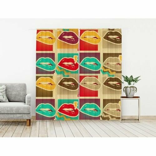Комплект штор из блэкаута, Губы попарт, 150/260 - 2 полотна