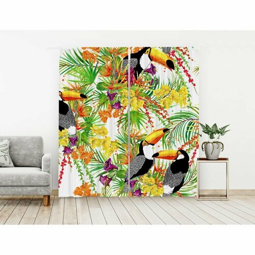 Комплект штор из блэкаута, Туканы, 150/260 - 2 полотна