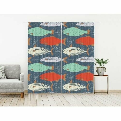 Комплект штор из блэкаута, Рыбы грандж, 150/260 - 2 полотна