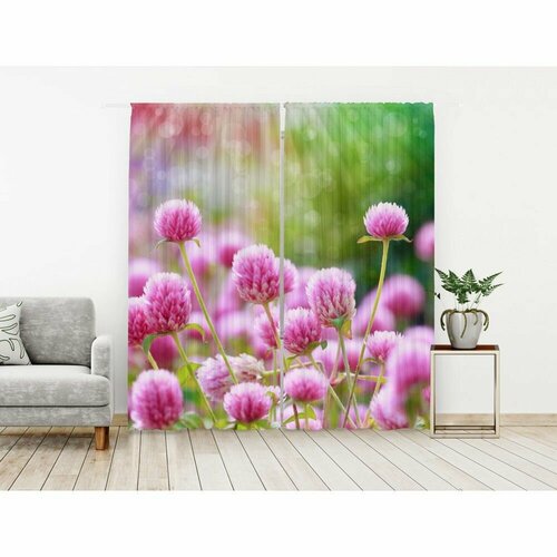 Комплект штор из блэкаута, Цветы клевера, 150/260 - 2 полотна