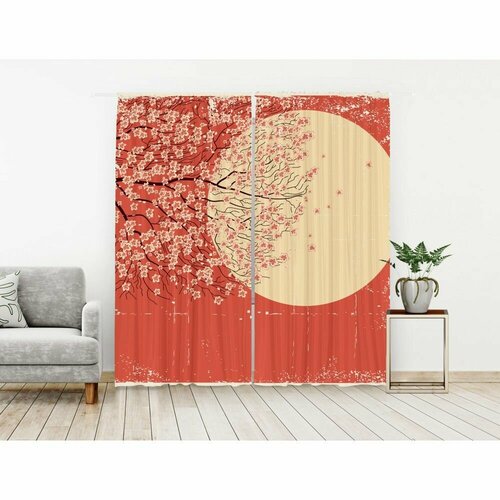 Комплект штор из блэкаута, Сакура на закате, 150/300 - 2 полотна