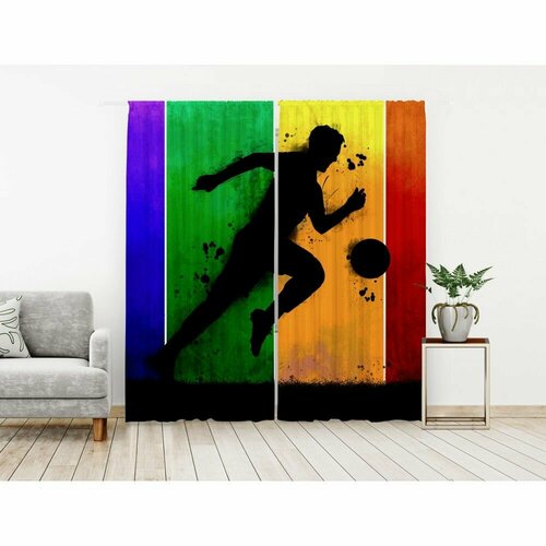 Комплект штор из блэкаута, Футбольный матч, 150/300 - 2 полотна