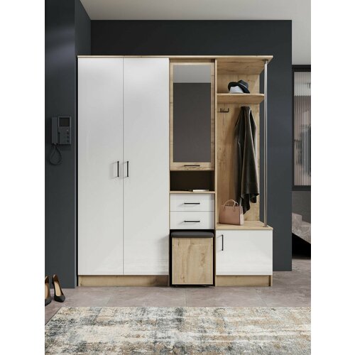 Прихожая Дуся 1.7 Дуб бунратти/Белый бриллиант