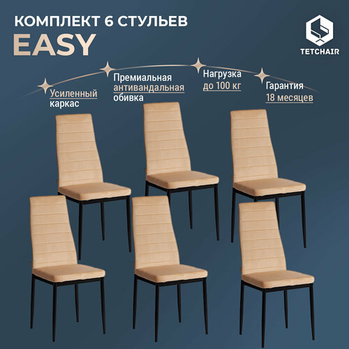 Комплект стульев для кухни с мягким сиденьем TetChair Easy (mod. JSC02-1), 6 шт, флок, песочный