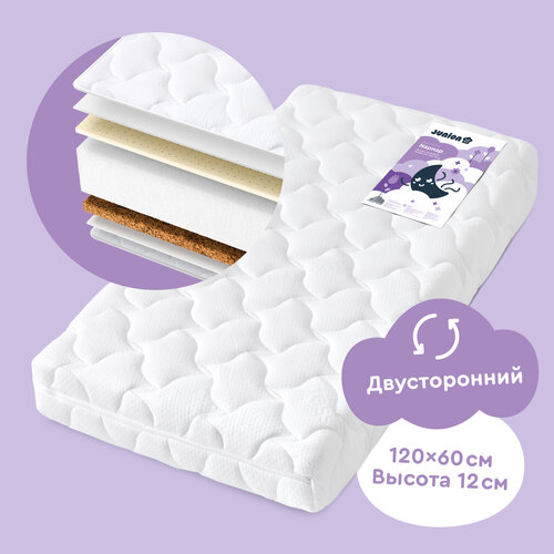 Матрас детский двусторонний Junion Napnap, 120х60х12 см, со съёмным чехлом Stress free, наполнитель Hollcon Plus, кокосовая койра, латекс