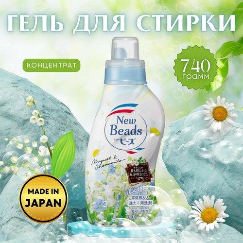 Мягкий гель для стирки белья KAO New Beads Pure Craft, с кондиционером, с ароматом ландыша и ромашки, 740г.