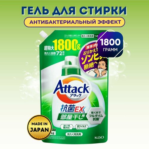 Жидкое средство для стирки белья гель KAO Attack Antibacterial EX 1800г