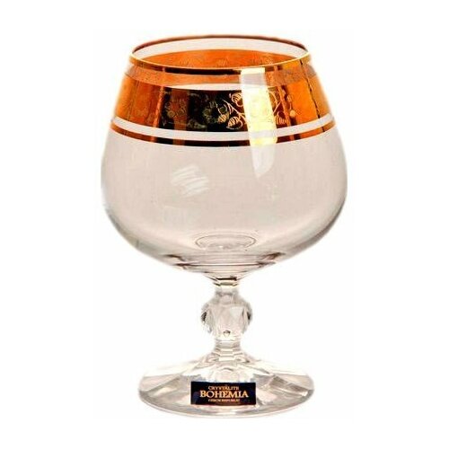 Бокалы для бренди 250 мл 6 шт Crystalite Bohemia "Клаудия /Цветочный узор на золоте" / 038682