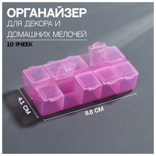 Контейнер для декора, 10 ячеек, 8,8 × 4,1 × 2 см, цвет розовый