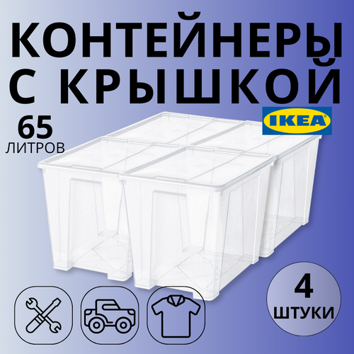 Контейнер для вещей с крышкой икеа самла, 57х39х42 см/65 л, 4 шт, прозрачный
