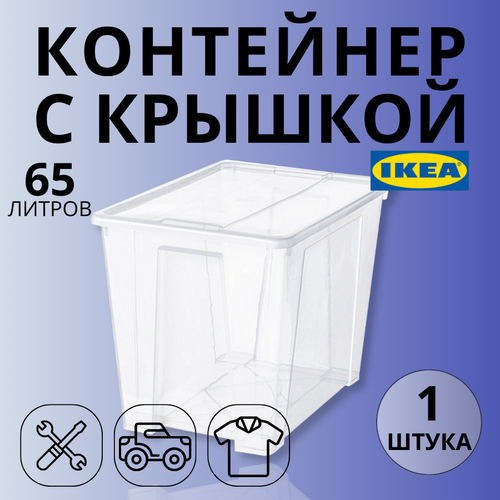 Контейнер для вещей с крышкой икеа самла, 57х39х42 см/65 л, 1 шт, прозрачный