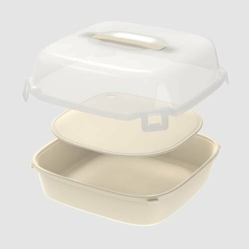 Контейнер для выпечки с ручкой и подложкой (тортовница) (300×300×140мм) (слоновая кость)