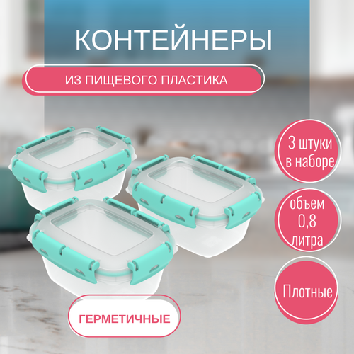 Пищевые контейнеры с герметичными крышками Альт-Пласт АП 731 3 штуки 0,8 литров