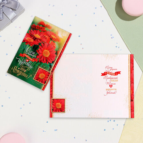 Открытка "С днем рождения", бежевая, с конвертом, открытка, 148х105мм