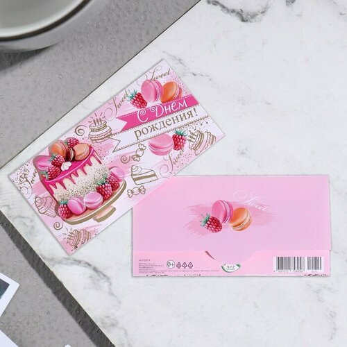 Конверт для денег "С Днем Рождения!" торт, 16х8см 9227938