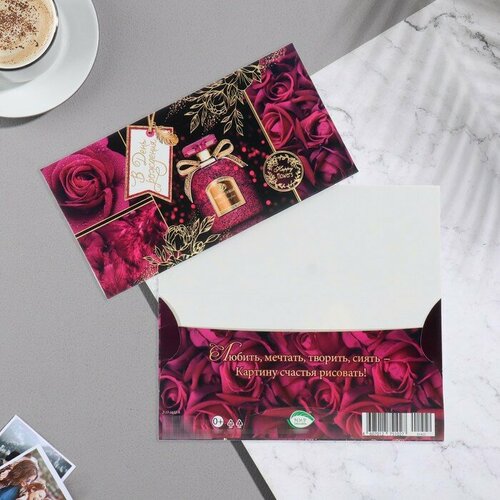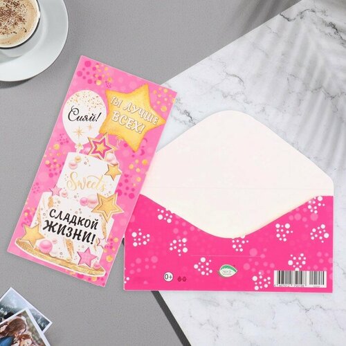 Конверт для денег "Сладкой жизни!" глиттер, торт, розовый фон, 20,7х23 см