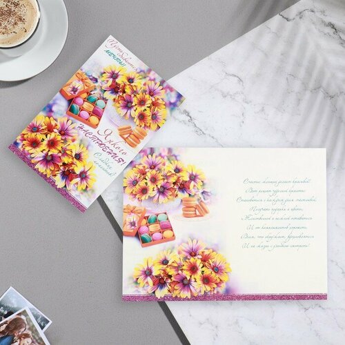 Открытка "Яркого настроения!" желтые цветы, печенье, 19х29 см 9526501