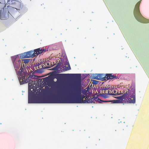Приглашение "На Выпускной!" глиттер, перо, 12х7,5 см (комплект из 80 шт)