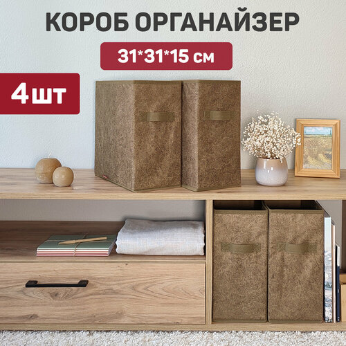 Коробки для хранения вещей, короб для хранения стеллажный, корзина, органайзер, подставка для книг и журналов, набор 4 шт, 31*31*15 см, MONET AUTUMN