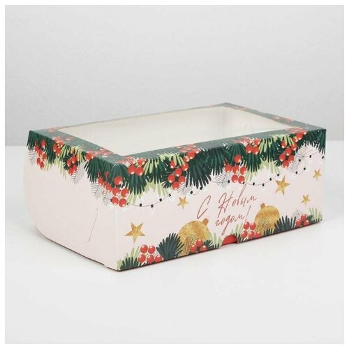 Коробка для капкейков "Новогодний подарок" 17x25x10см