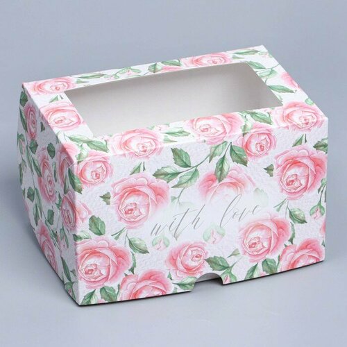 Коробка складная на 2 капкейков с окном «Розы», 16 х 10 х 10 см