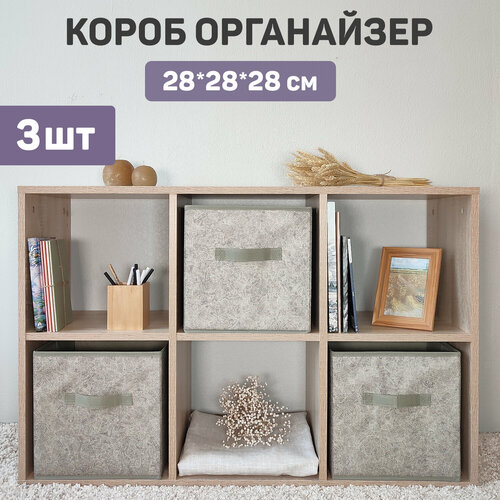 Коробки для хранения вещей, короб для хранения стеллажный, ящик, корзина, набор 3 шт, 28*28*28 см, MONET MORNING