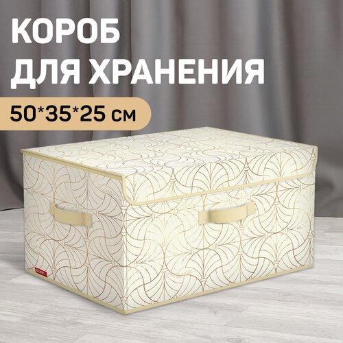 Коробка для хранения вещей с крышкой, короб для хранения стеллажный, корзина, ящик с откидной стенкой, 50*35*25 см, MONET SUMMER