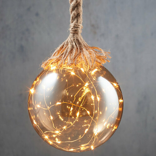 Edelman Подвесной светильник на канате Шар Браноган 14 см, 30 теплых белых LED ламп, на батарейках, таймер, стекло 1105137