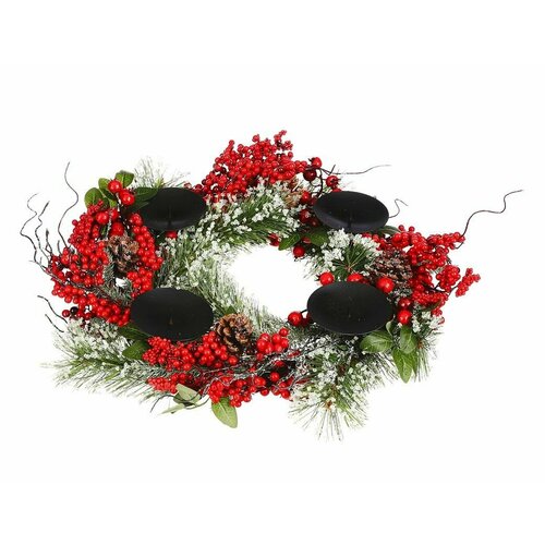 Декоративный венок - подсвечник с шишками и ягодами джерри, на 4 свечи, 50 см, Edelman