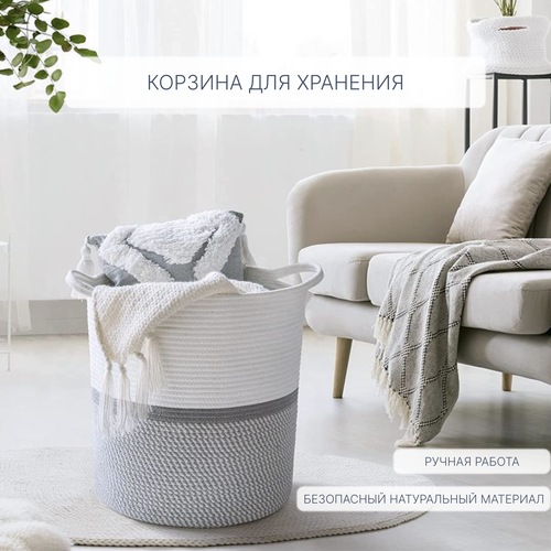 Корзина плетеная, органайзер для хранения RE&MARK, хлопок, d30 см, бело-серая, 21 литр
