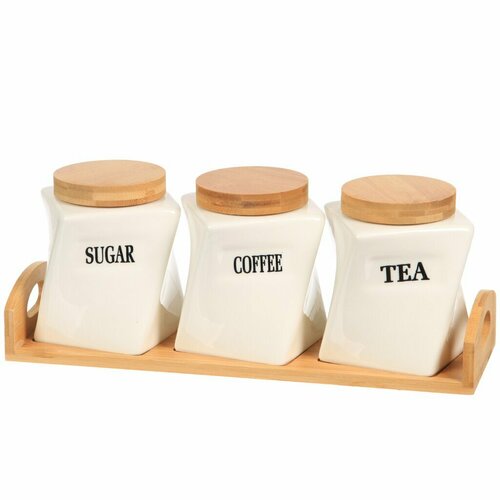 Банка для сыпучих продуктов, керамика, 3 шт, с крышкой, на бамбуковой подставке, Y4-6594