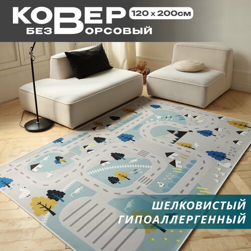 Ковер в детскую комнату "Дорога" для мальчика, детский коврик безворсовый, микрофибра без ворса, 120*200см/ Like_house