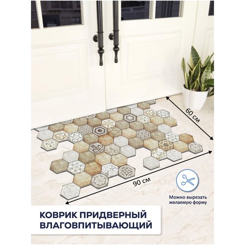 Коврик вырезной шахинтекс придверный влаговпитывающий 60х90 соты Мозаика бежевый