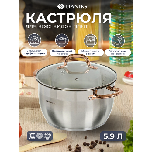 Кастрюля нержавеющая сталь Daniks 5,9л. индукция Мадрид Gold