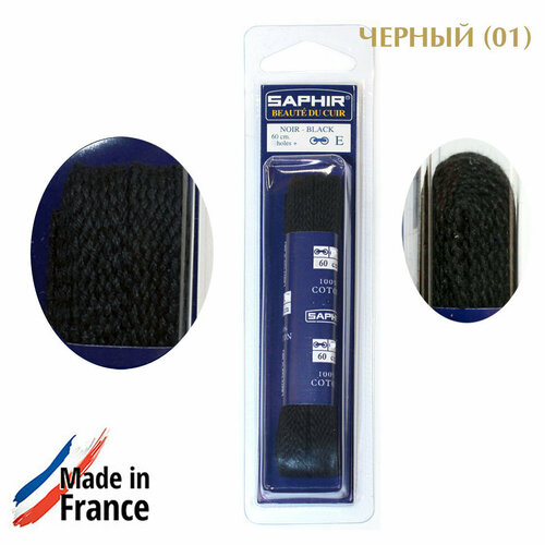 SAPHIR Шнурки 60 см. плоские 8 мм, цветные. (черный (01))