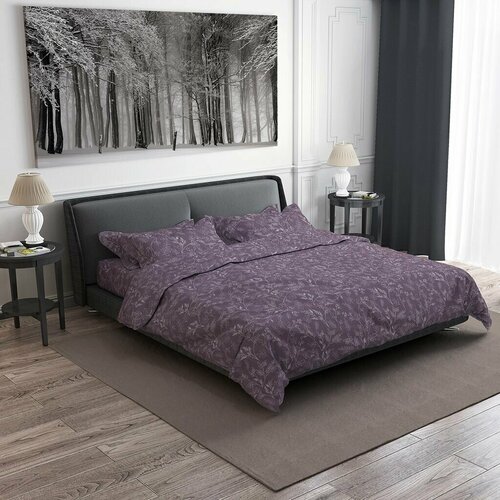 Постельное белье, комплект Евростандарт "Коллекция "Лето". "Лаванда", 4 предмета: пододеяльник на пуговицах 200х215см, простыня кла...